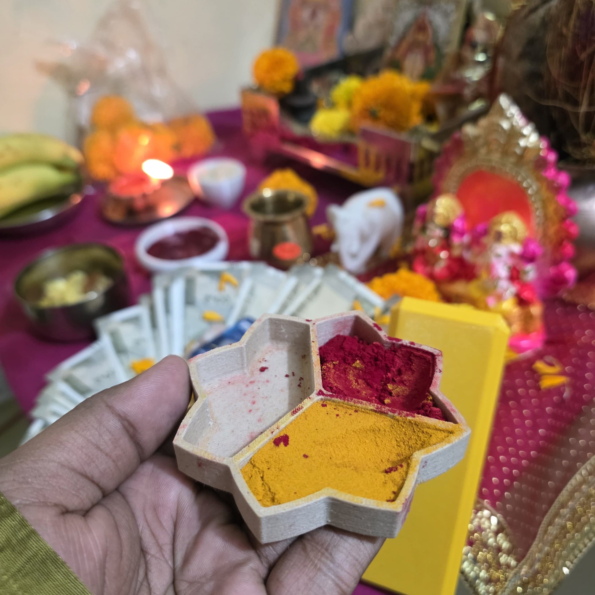 Perfect for storing haldi and kumkum during worship.