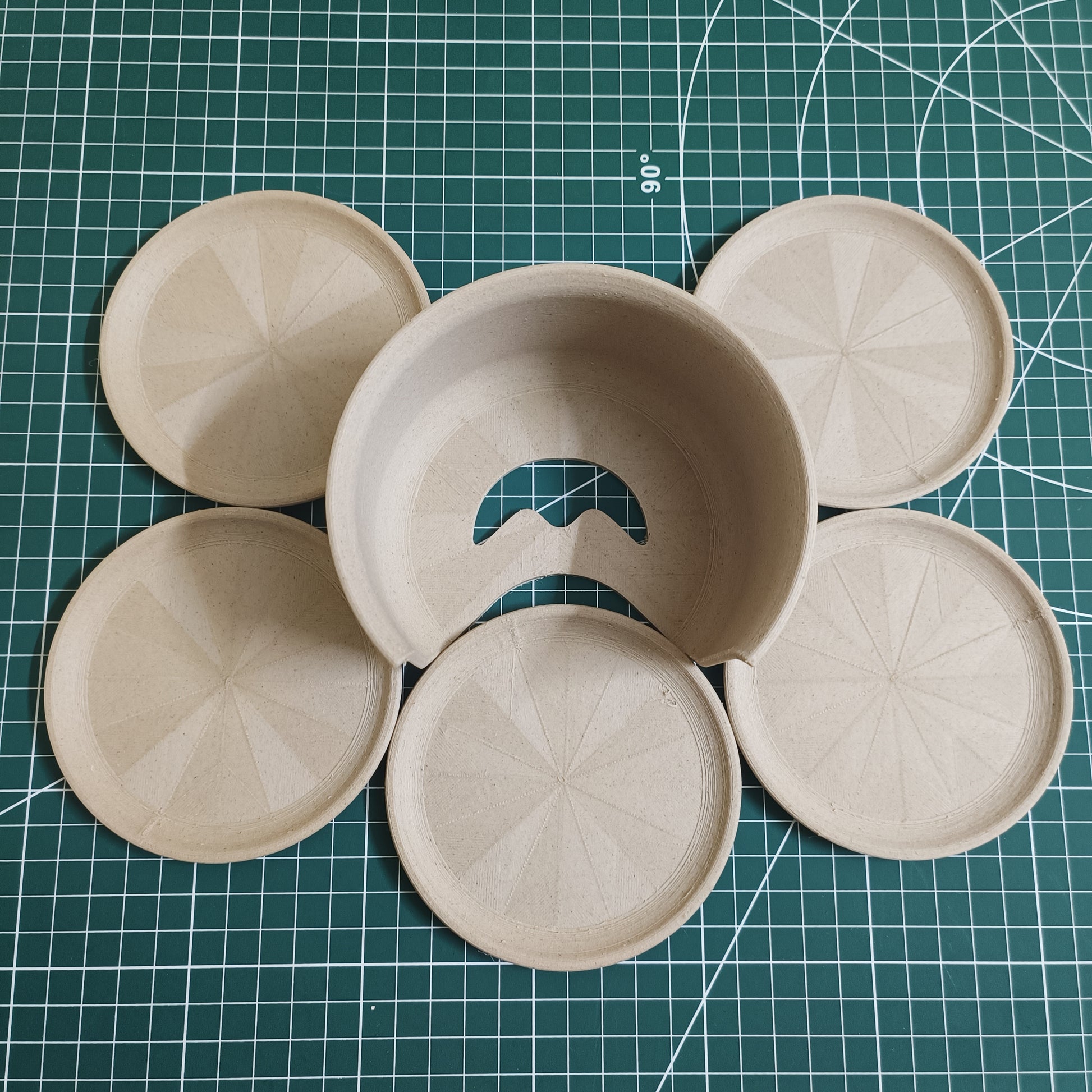 Complete Set – Comes with 5 coasters and a neat storage rack.